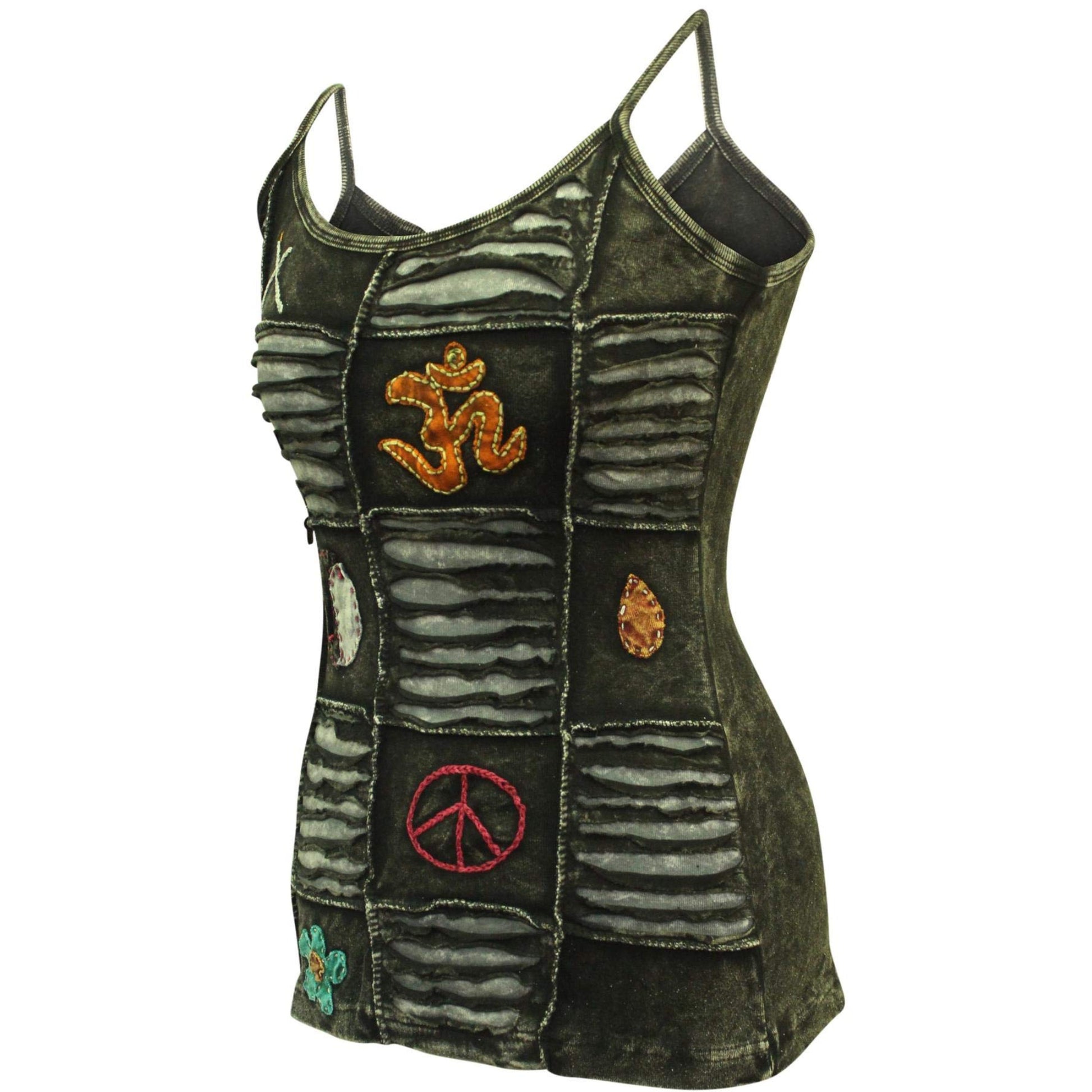 Women Slashed Faded Goth Embroidered Festival Tank Tops